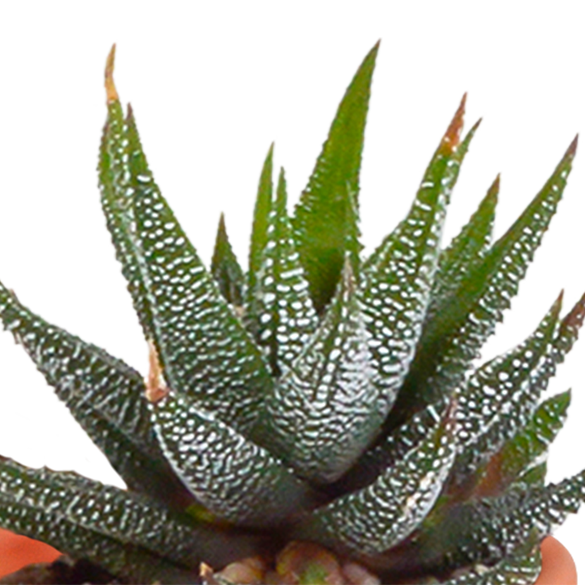 Deze Cactus & Succulenten Mix is een levendig ensemble van vormen, kleuren en texturen. Van de zuilvormige Cereus tot de rozetachtige Echeveria, en van de robuuste Crassula tot de fijne structuren van de Haworthia — elke plant heeft een unieke uitstraling. De mix wordt geleverd in een mediterrane terracotta pot, die perfect contrasteert met het frisse groen en de natuurlijke tinten van de planten. Samen vormen ze een tijdloos, stijlvol geheel dat warmte en karakter toevoegt aan elk interieur.