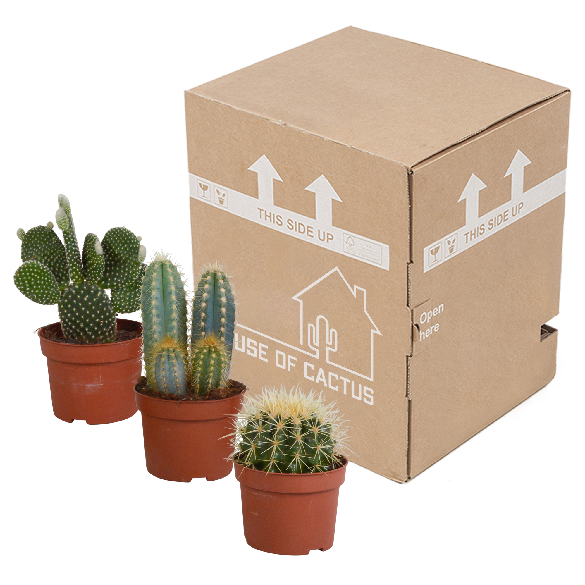 Zie hier een stekelige mix! Deze mix bestaat uit 3 cactussen die in kleur, hoogte én vorm van elkaar verschillen. De cactussen komen rechtstreeks van de kweke
