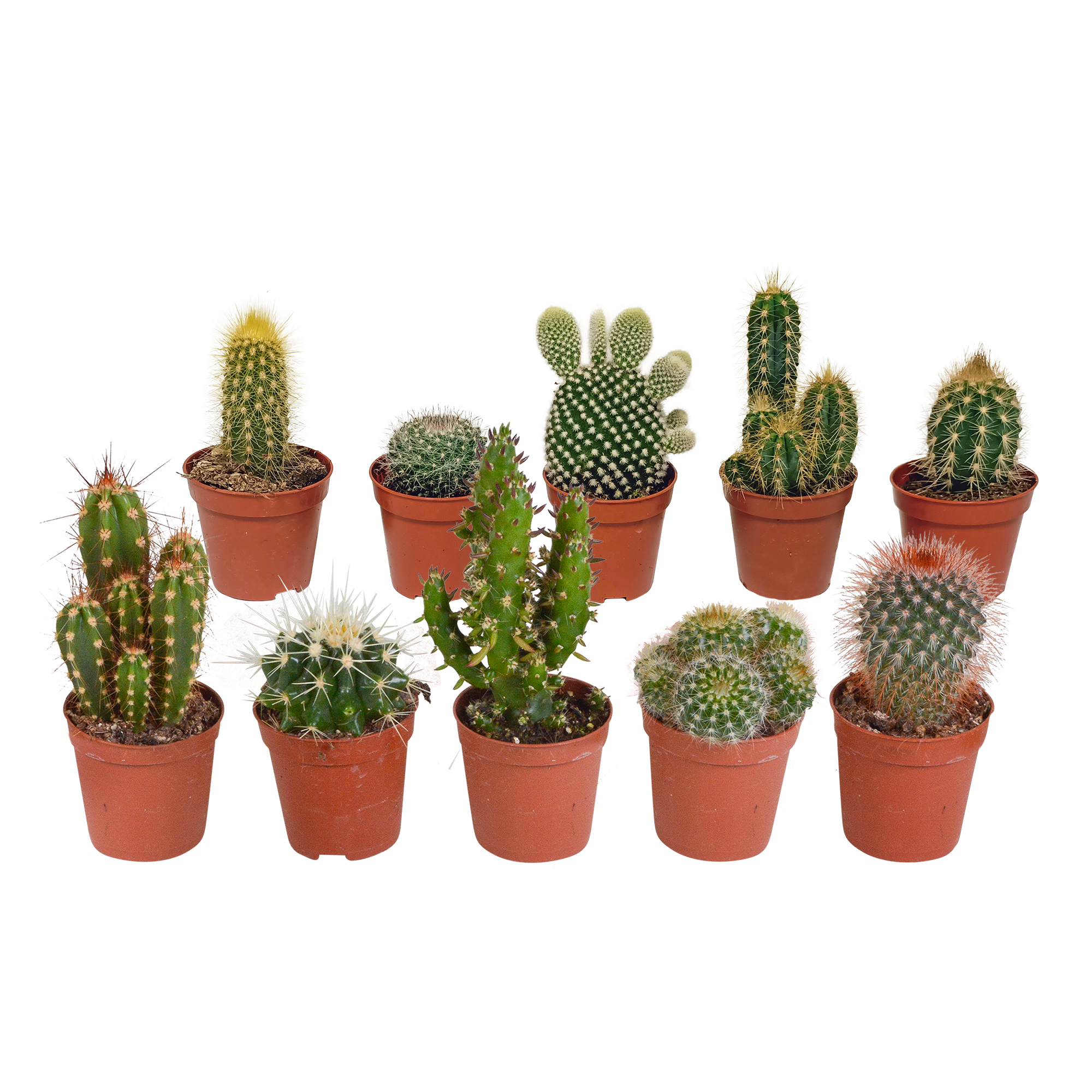 Deze set van tien cactussen biedt een prachtig samenspel van vormen, kleuren en texturen. Van ronde bolcactussen tot langwerpige zuilvormen — elk exemplaar heeft een eigen karakter. De variatie in hoogte en kleur zorgt voor een levendig en harmonieus geheel dat direct de aandacht trekt. Dankzij hun natuurlijke uitstraling passen ze perfect in elk interieur, van modern tot bohemian. Deze mix is ideaal als stijlvolle eyecatcher op tafel, vensterbank of in een decoratieve schaal.
