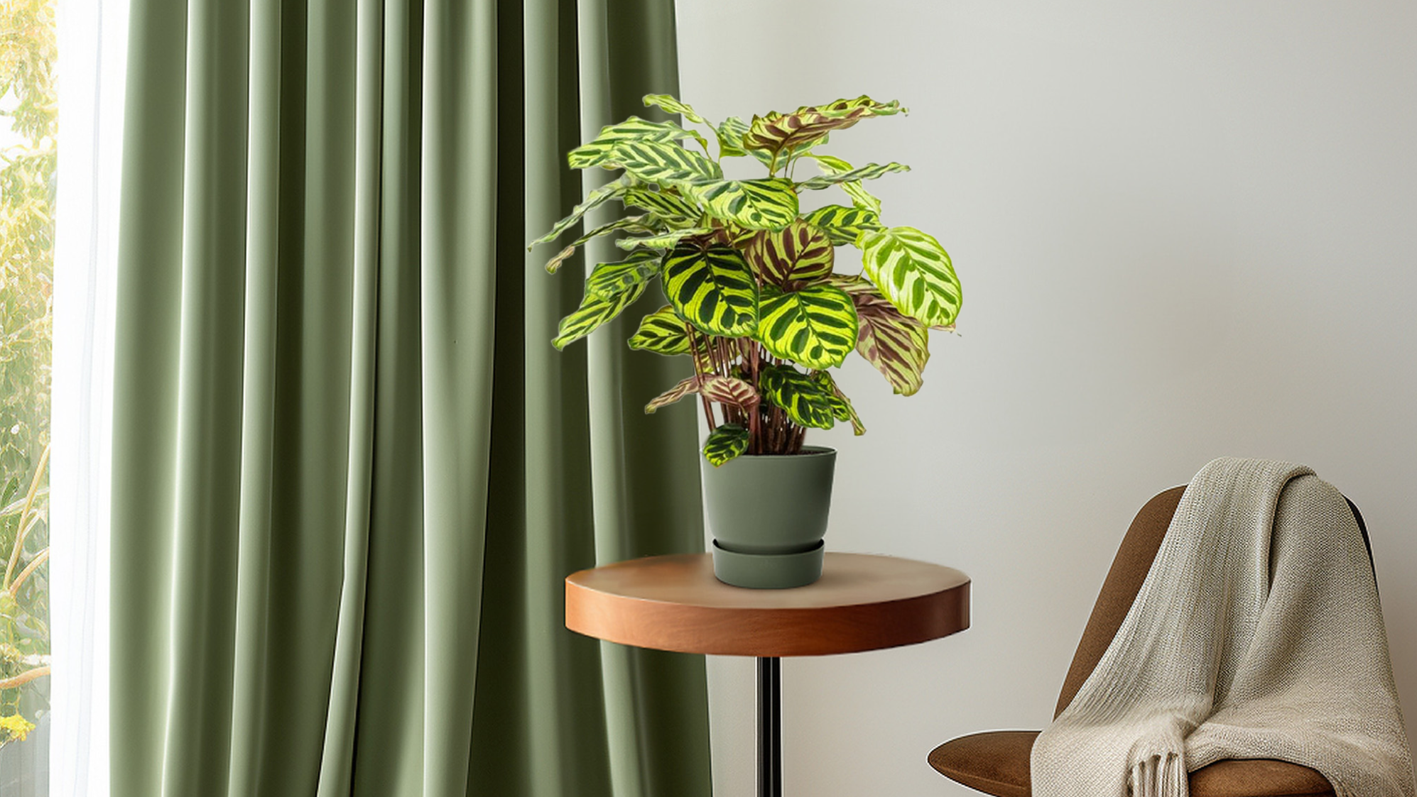 De Calathea makoyana staat bekend als een van de meest verfijnde gebedsplanten. Door haar unieke bladtekening en zachte bladbeweging brengt ze niet alleen kleur en leven in huis, maar ook een gevoel van rust — alsof de natuur zelf ademhaalt in je woonkamer.