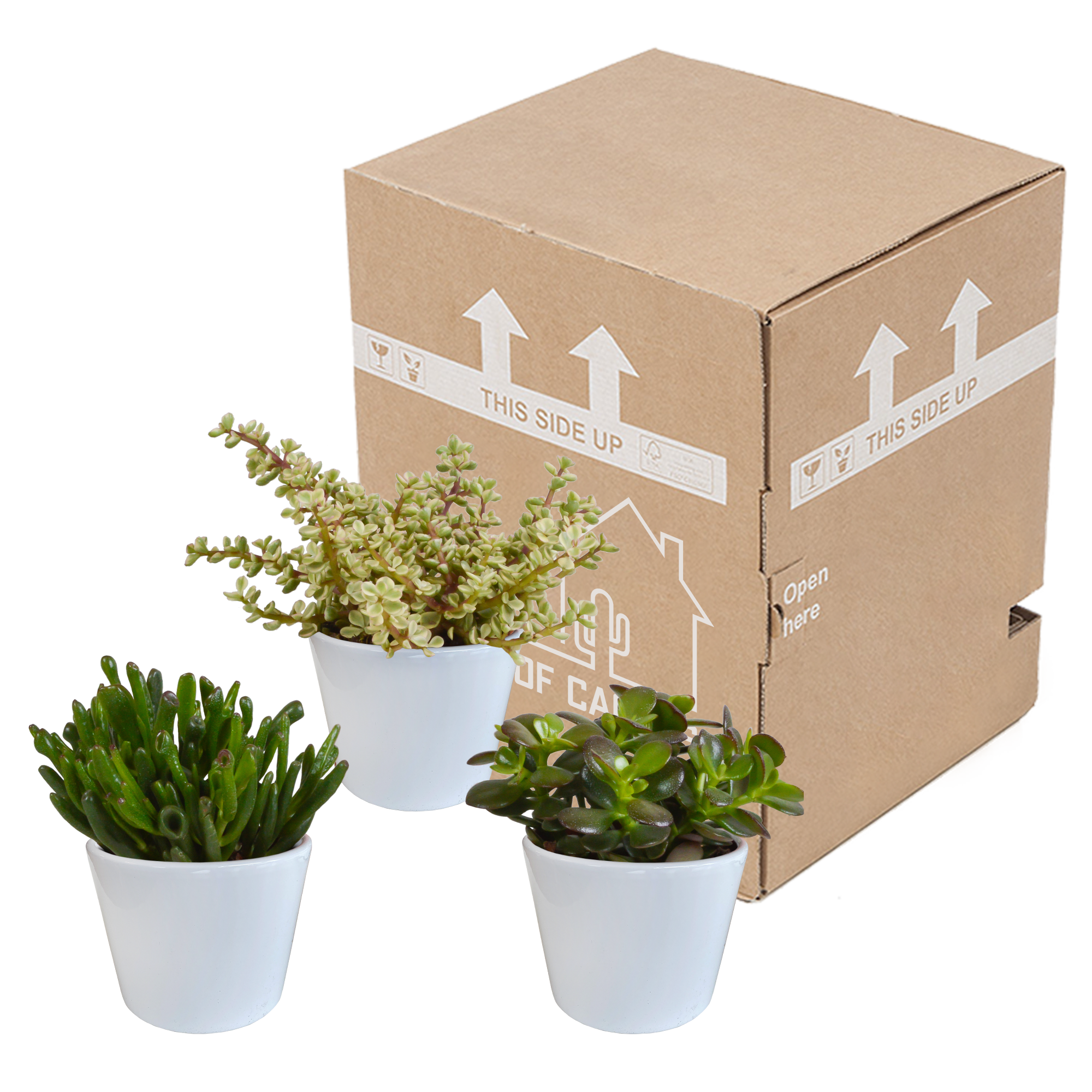 De Crassula staat bekend als een geluksplant en zou voorspoed en welvaart aantrekken — vandaar de bijnaam “Jadeplant”. Deze mix van drie varianten combineert niet alleen robuuste schoonheid met minimalistisch design, maar brengt ook een stukje natuurlijke sereniteit in elke ruimte.