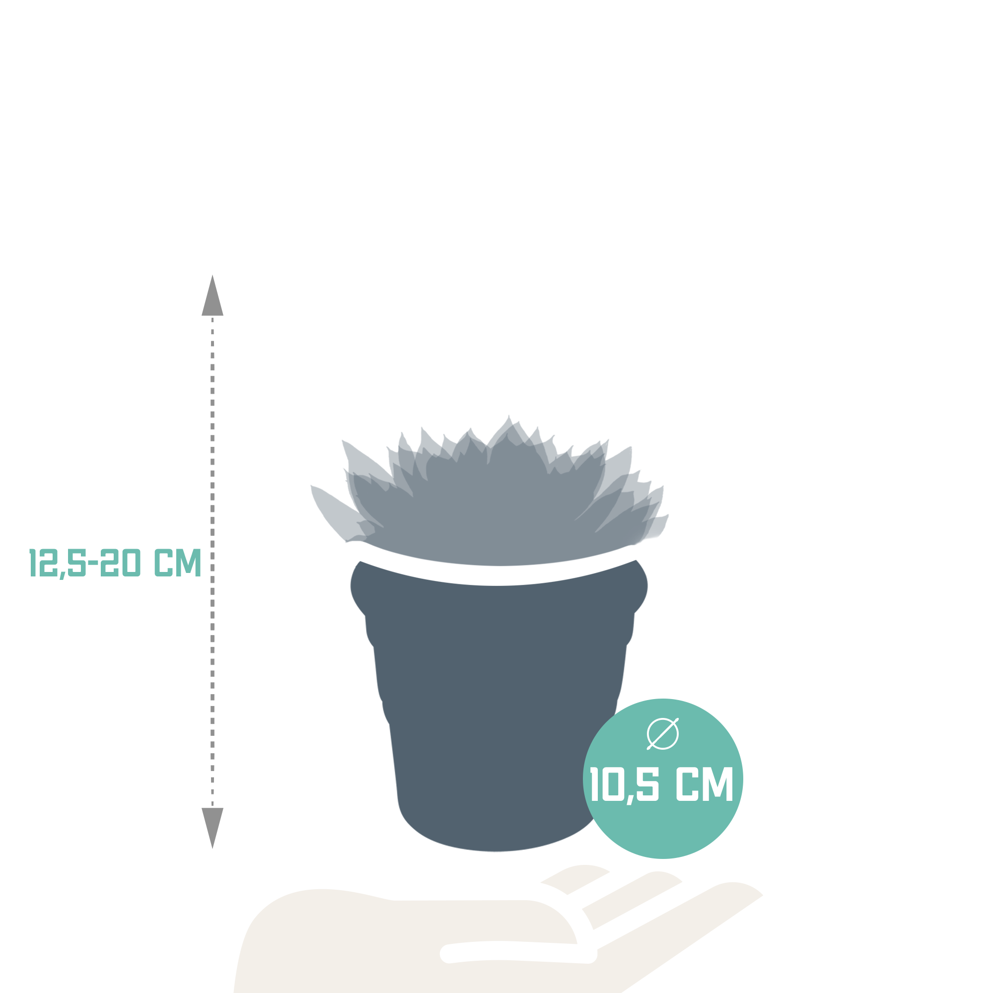 Deze prachtige Echeveria mix kenmerkt zich door haar bloemvormige rozetten van vlezige bladeren die als parels aan elkaar zitten. Elke plant heeft een unieke kleur en vorm, wat zorgt voor een speels en decoratief geheel. De dikke, sappige bladeren zijn bedekt met een beschermende waslaag die de plant een subtiele, poederachtige glans geeft. Deze set van 3 Echeveria's wordt geleverd in een charmante mediterrane terracotta pot van 10,5 cm, die perfect past bij het natuurlijke karakter van deze vetplanten. De poreuze terracotta helpt overtollig vocht af te voeren, wat ideaal is voor deze droogteminnende planten. Echeveria's zijn compacte planten die perfect passen op een vensterbank, bureau of als onderdeel van een vetplantenarrangement. Onder de juiste omstandigheden kunnen ze zelfs bloemen produceren aan lange stelen.