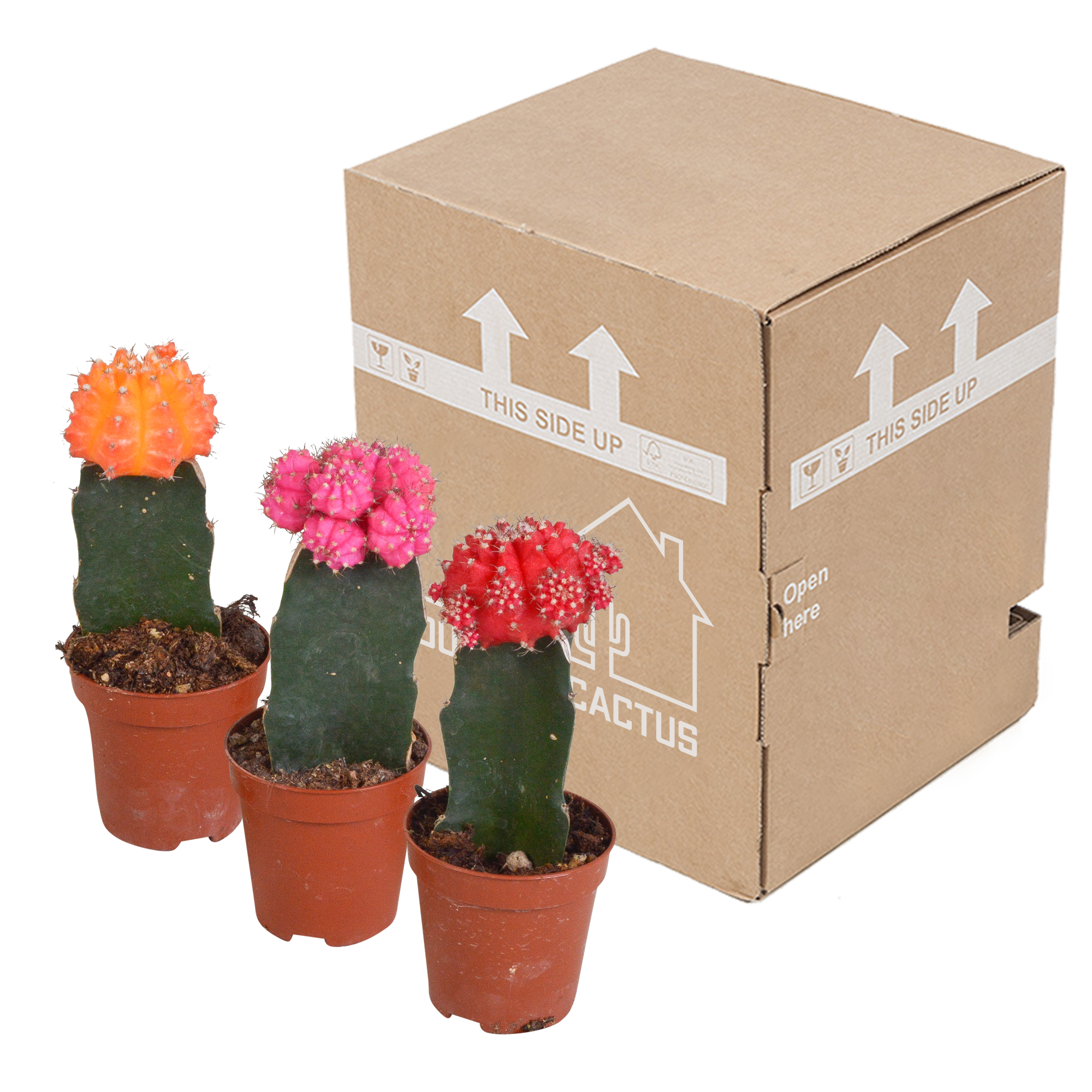 De Gymnocalycium mihanovichii is een bijzondere geënte cactus oorspronkelijk afkomstig uit Paraguay en Argentinië. Deze kleurrijke mutanten bevatten geen chlorofyl en worden daarom geënt op de stam van een Hylocereus trigonus (drakenfruitcactus). Deze mix bestaat uit 3 Gymnocalyciums in verschillende felle kleuren zoals rood, roze, geel of oranje.