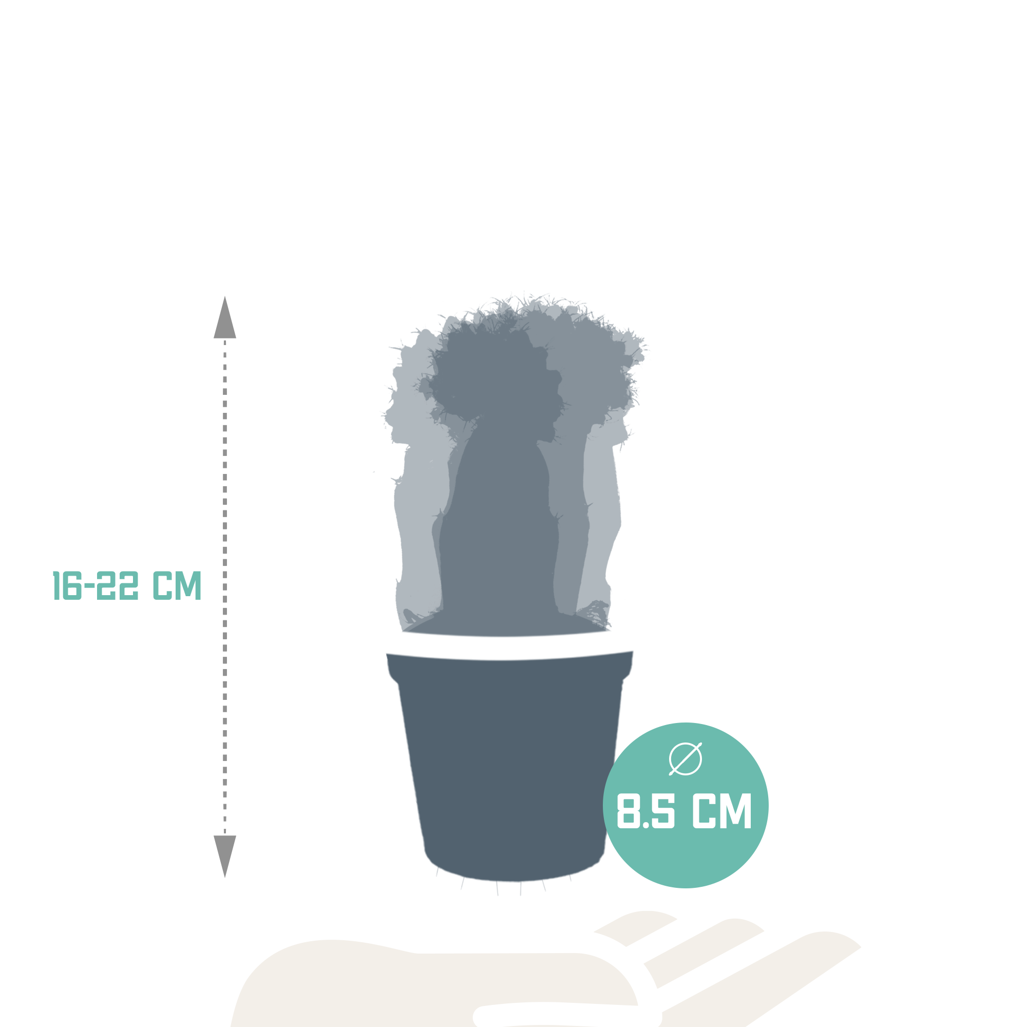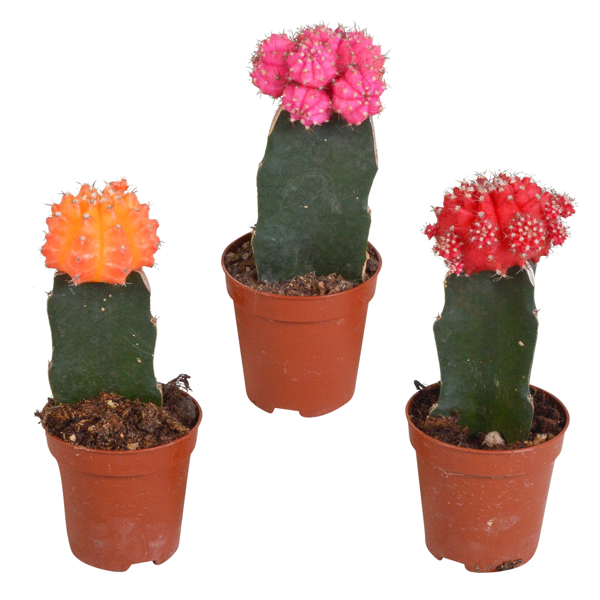 Kenmerkt zich door haar bolvormige lichaam met verticale ribben in spectaculaire neonkleuren. De kleurrijke bol zit geënt op een groene onderstam. Set van 3 Gymnocalyciums (5,5 cm) in verschillende kleuren. Perfect als vrolijke eyecatcher op vensterbank of bureau. Kleuren kunnen afwijken van de foto. Zeer onderhoudsvriendelijk en decoratief.