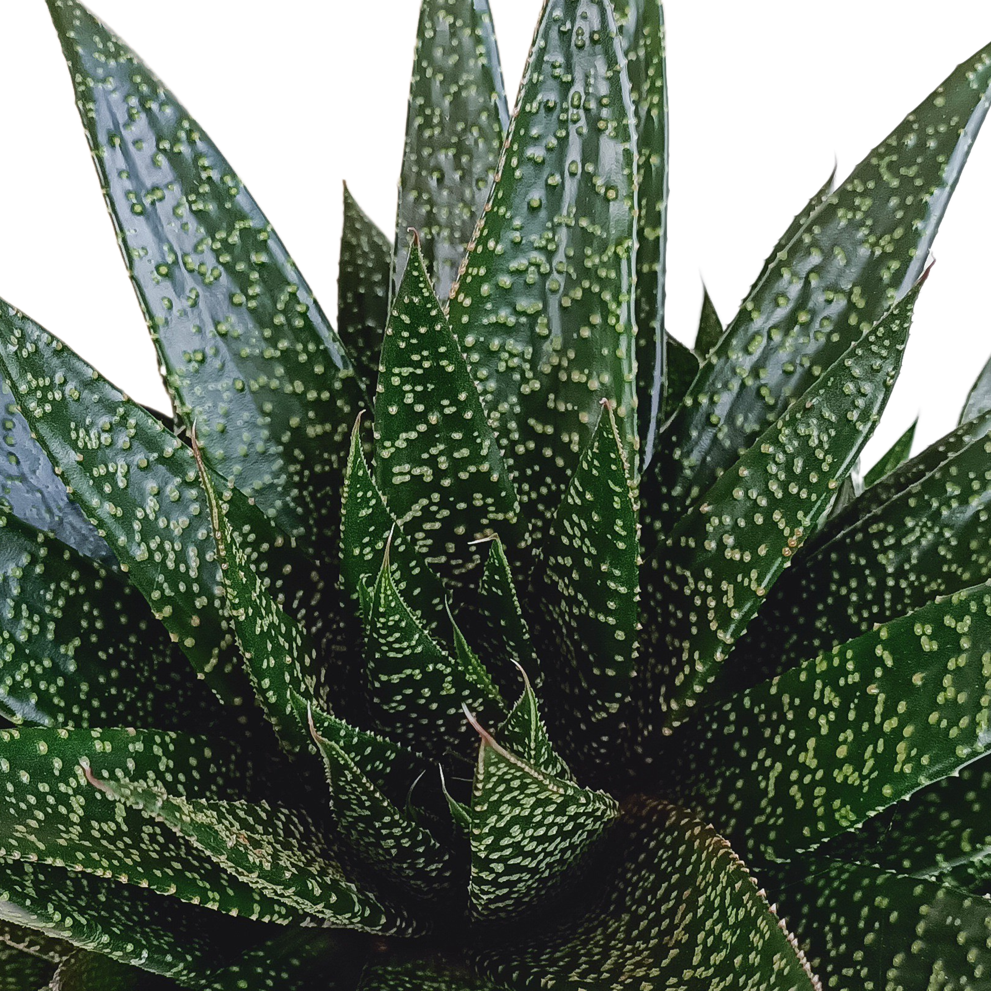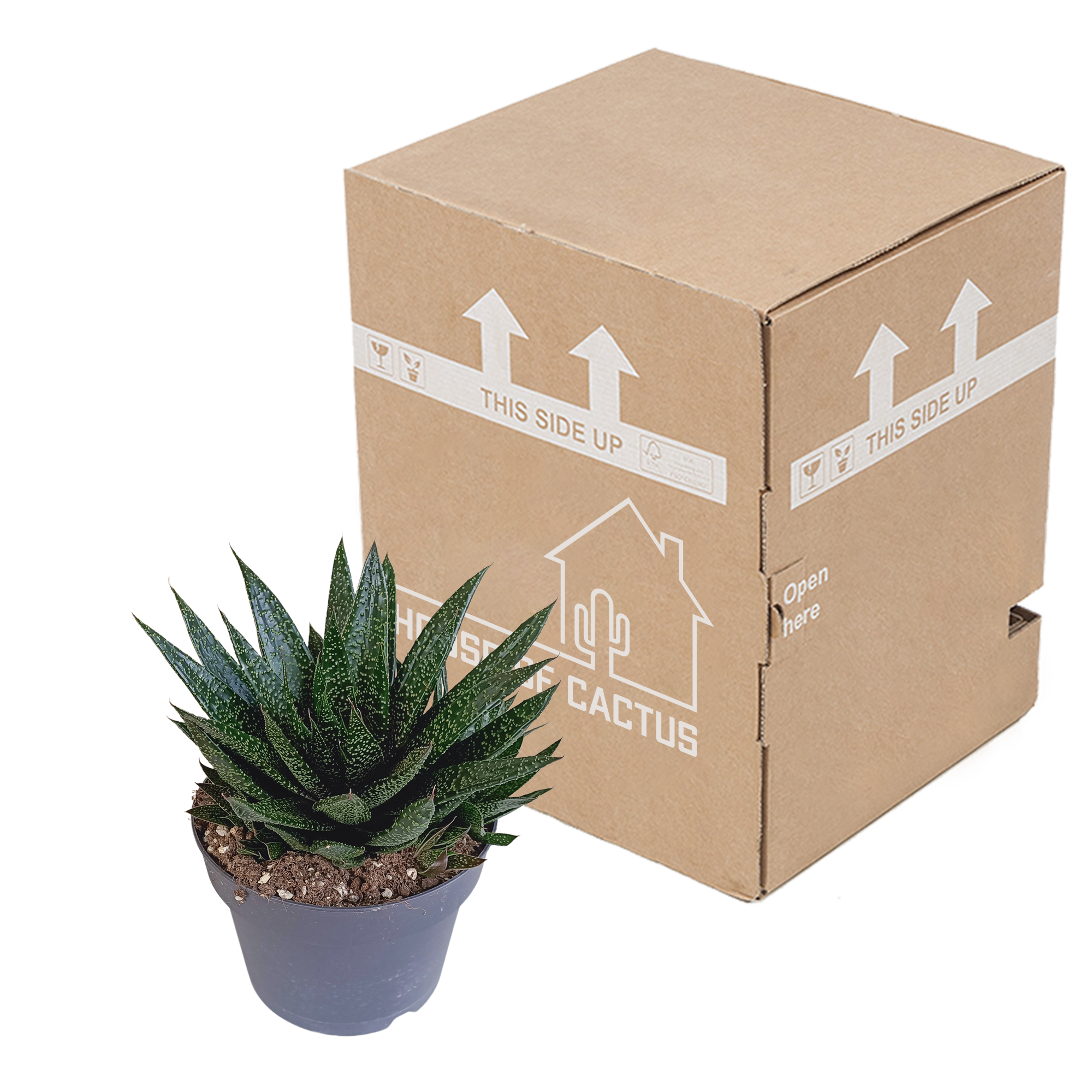 Kenmerkt zich door dikke, vlezige bladeren met karakteristieke witte vlekken en donkergroene kleur. De tongvormige bladeren groeien in een rozet of twee rijen tegenover elkaar. Diameter 17 cm. Perfect als decoratieve vetplant op vensterbank, bureau of in vetplantenarrangement. Zeer onderhoudsvriendelijk, droogtebestendig en compact.
