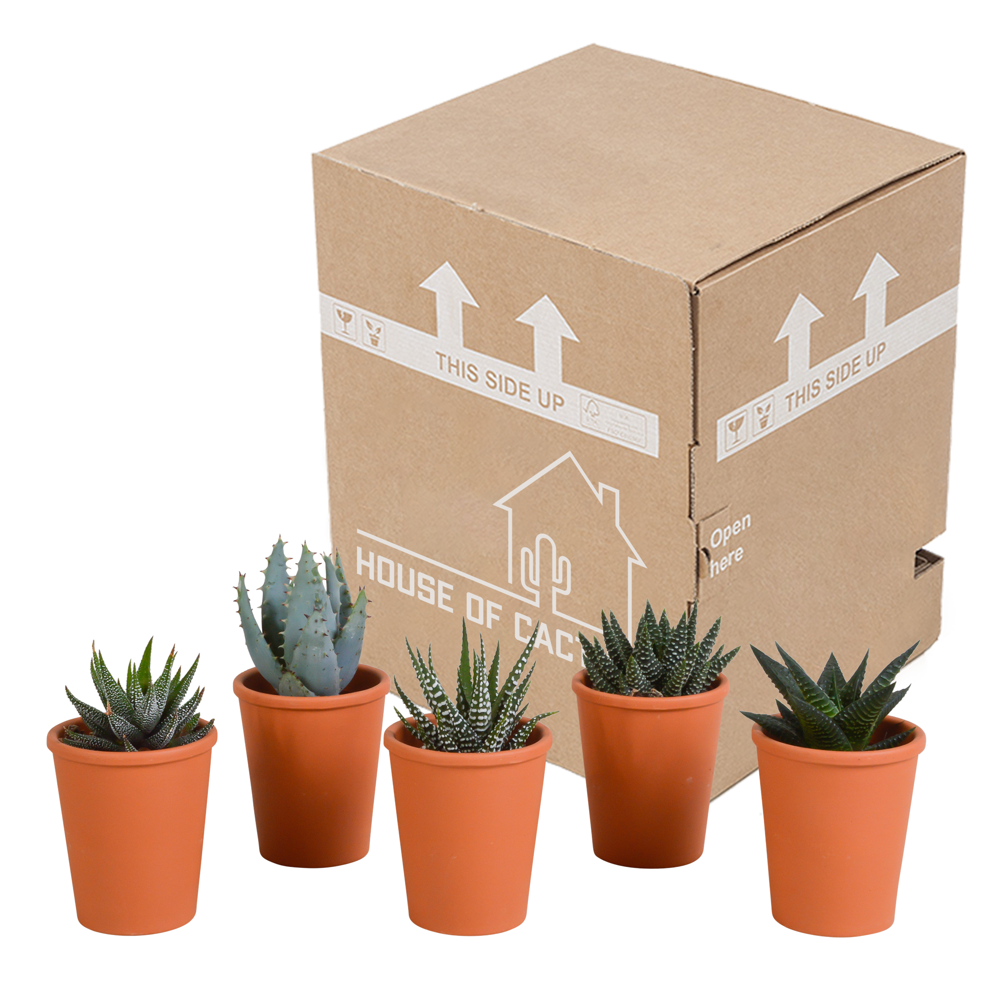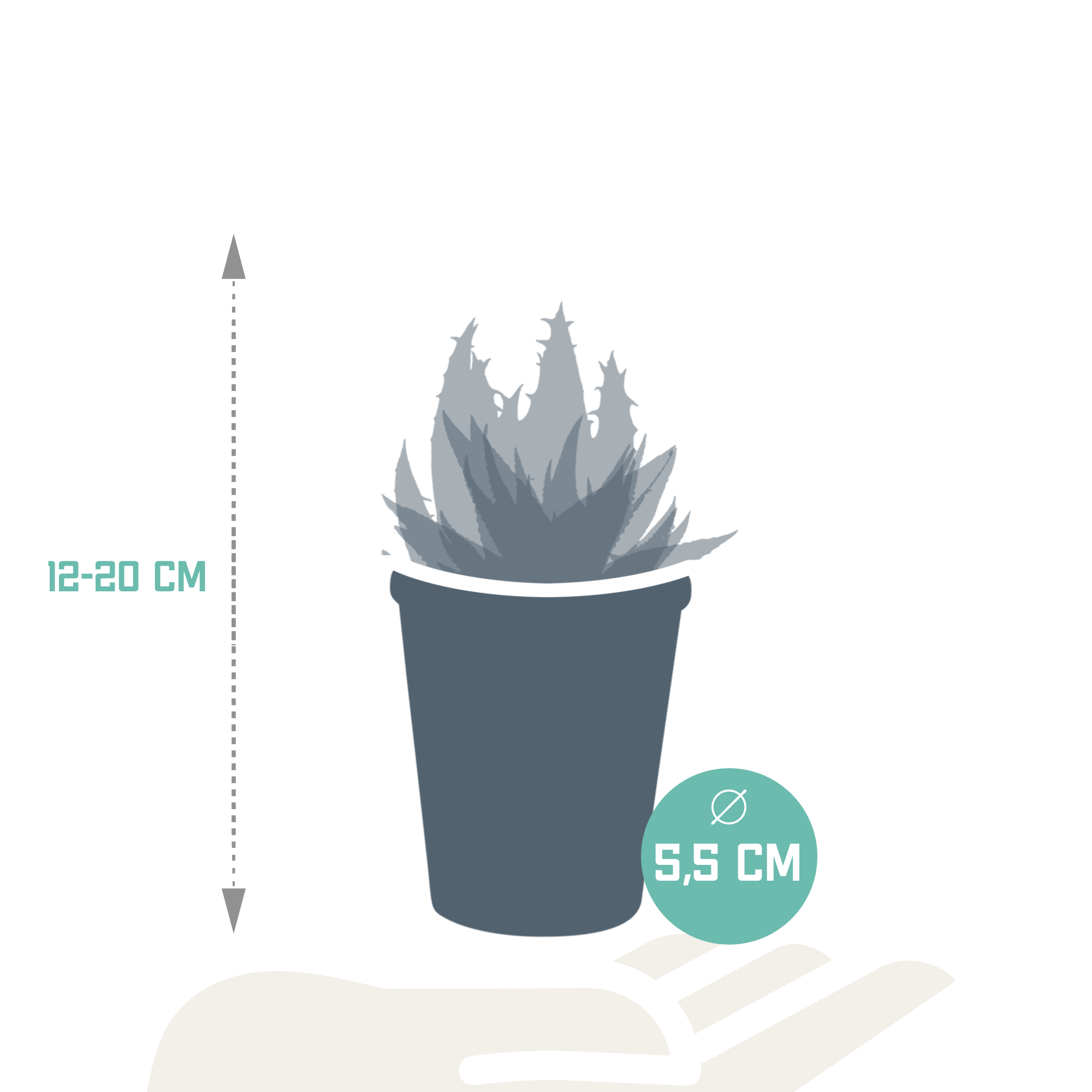 Gasteria en Haworthia zijn authentieke vetplanten oorspronkelijk afkomstig uit Zuid-Afrika. Deze succulenten groeien van nature in droge, rotsachtige gebieden en schaduwrijke plekken. Deze mix bevat 5 verschillende planten die variëren in kleur, hoogte en vorm. Rechtstreeks van de kweker in mediterrane terracotta pot.