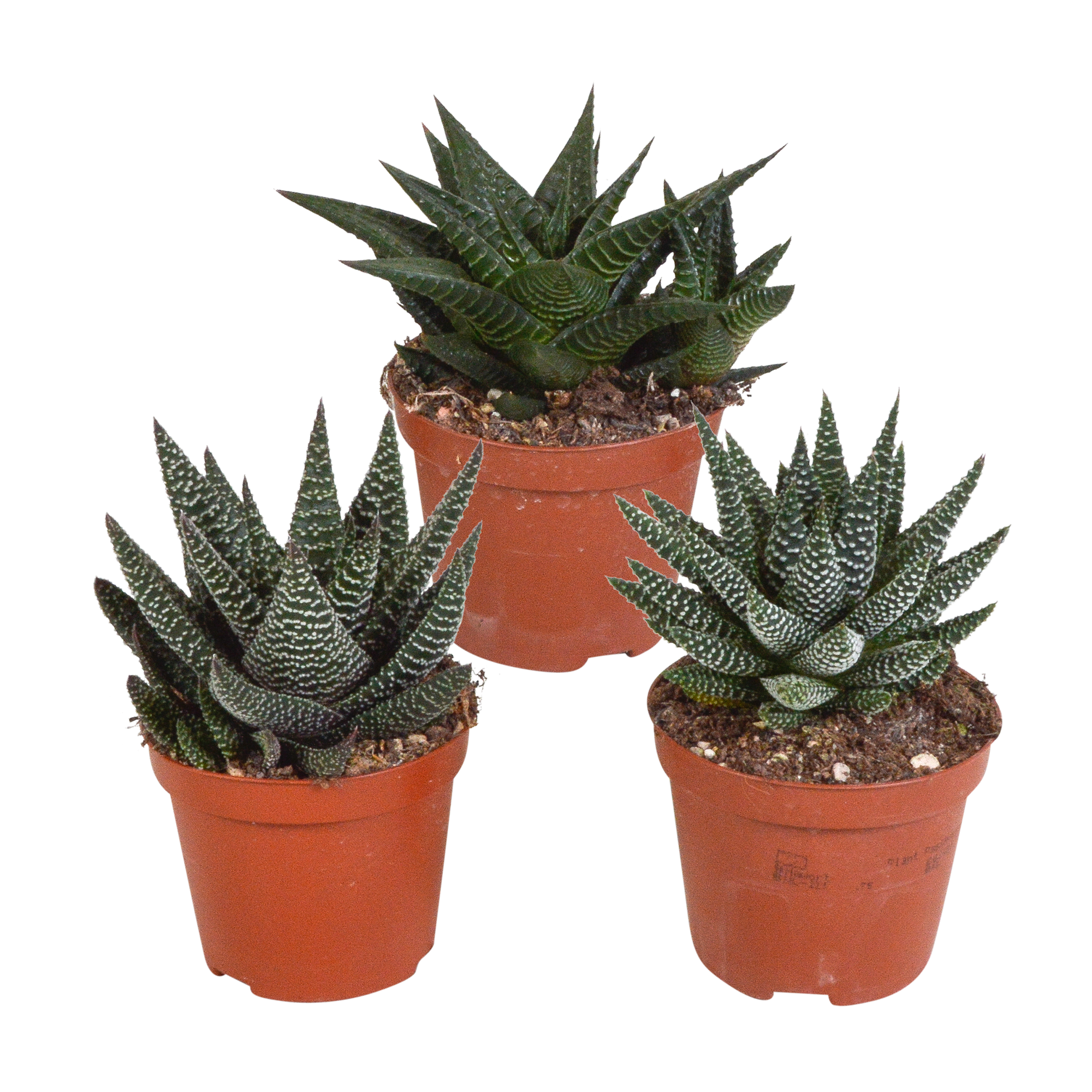 Kenmerkt zich door dikke, vlezige bladeren met diverse patronen, vlekken en strepen. De compacte rozetten variëren van donkergroen tot lichtgroen met witte tekeningen. Set van 3 planten (8,5 cm) zonder pot. Perfect voor eigen arrangement, terrarium of pot naar keuze. Zeer onderhoudsvriendelijk, flexibel en decoratief.